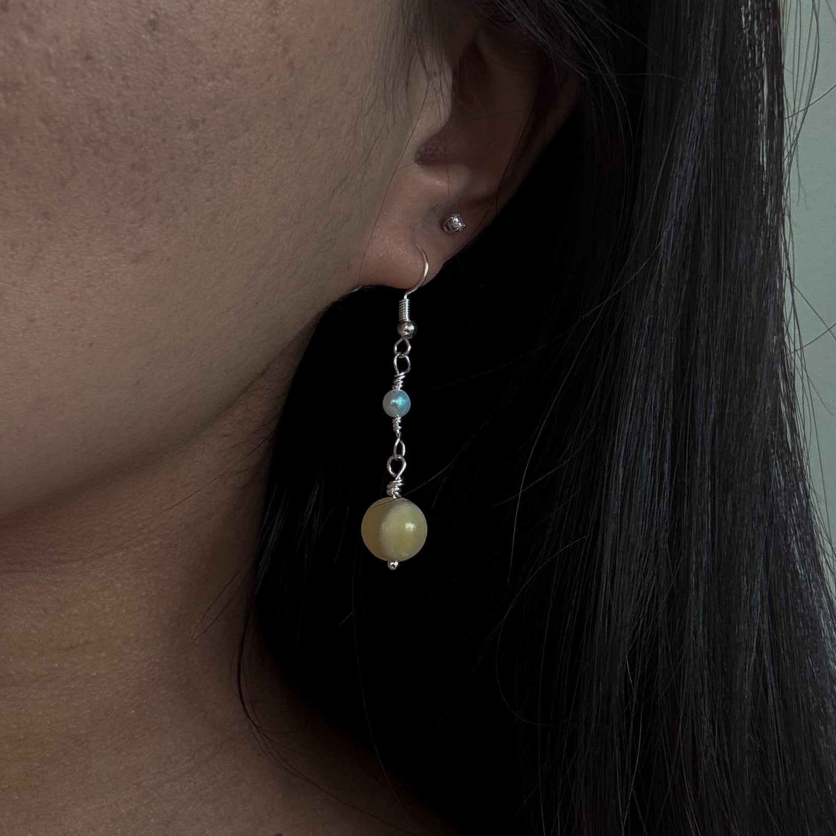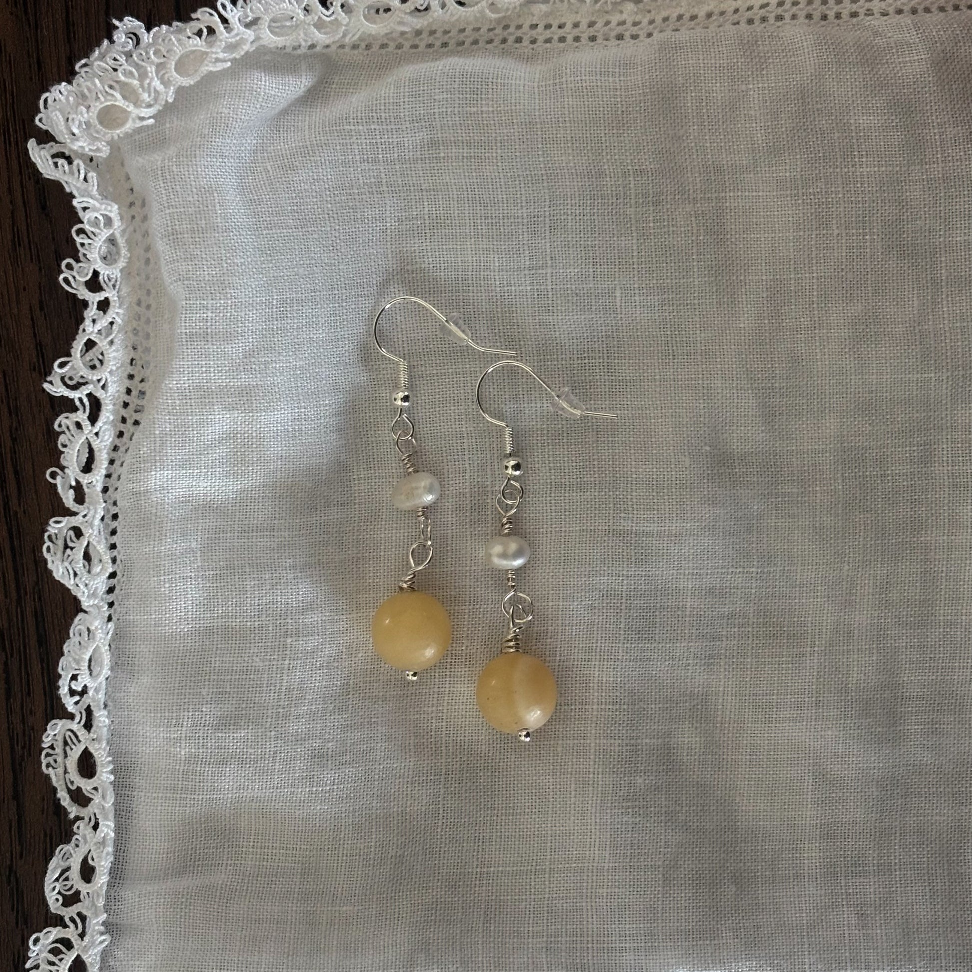 - Baroque pearl and yellow calcite set in hypoallergenic silver metal.